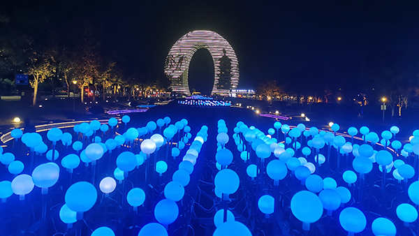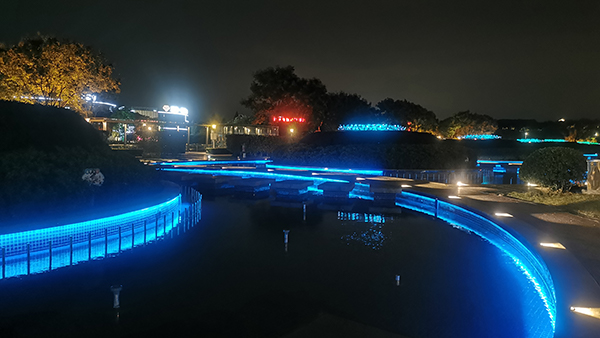 Moon Square interprets the "Two Mountains" concept with ecological light language. The pool light strips and club lights are intelligently controlled, and the ecological picture of the square waterscape is outlined with light and shadow. Intelligent lighting programming transforms the slogan "Green water and green mountains are gold and silver mountains" into a dynamic visual language, allowing ecological civilization to radiate the beauty of technology in the night.
